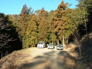 市営グランド、浄水場の脇を通り抜けて山道を道なりに進むと、どんづまりが左の写真の駐車場になっています。 それにしてもカーナビってのは便利ですねえ。ワタシはつい最近使い始めたばかりですが、マイカー登山ではそのありがたさを毎度実感します。まあ、ときどき思い通りにならないこともありますが・・・ 車の後ろが登山口になっています。8:20分出発。