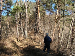 そしてだいぶ下りてくると、左手にやや薄暗い針葉樹の林が現れてきました。すると長男が、「こわいよ〜、タヌキが出てくるよ〜」とさかんに怖い怖いと言います。なんで熊とかじゃなくてタヌキなんだ;? 「大丈夫だよ、タヌキは果物とかしか食べないんだから。あれ?ちがうなあ、、、果物を食べるのはコウモリだったっけ?じゃあやっぱりタヌキは肉食か・・・でもタヌキは人間なんか襲わないから大丈夫だよ」 「ボクたちは雑食だよね!」 (ガクッ;)