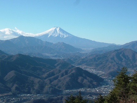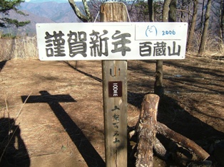 新年早々ということもあり、こんな挨拶看板もありました。 山頂はかなり広いのですが、北側の展望はあまりよくありません。南側はよく開けていて、富士山をはじめ、大月市を一望できます。 また、南側には桜の木もあったので、その咲く頃はきっといいのでしょうね。