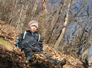 そして、前回の景信山のときと同様、枯葉の滑り台を。