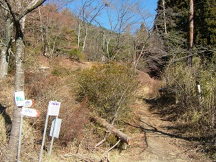 1時間ほど山頂で過ごし、10:50山頂発。今度は登ってきたのとは反対側の東の方に下りていきます。 ちょっと行くと分岐があり、そこを右へ。
