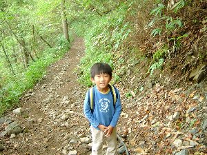 登ってしばらくすると「もう歩けない」というので、少し休んで、1分ほど歩くとまた「もうダメ」、の繰り返しでした。途中で「おんぶ」「だっこ」というのでおんぶもしましたが、この急坂続きではこちらもまいってしまいました。